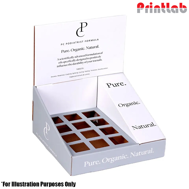 Made from durable corrugated cardboard, this display unit is not only eco-friendly but also designed for maximum impact. Whether for health stores, wellness pop-ups, or beauty counters, it offers a perfect way to neatly present your products and attract customers.