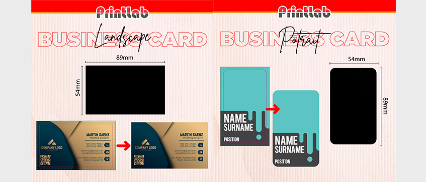 - Upload your business card design or create one using Printlab's online design tool.