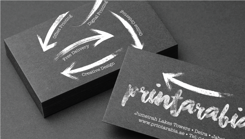 White on Black Card: Printed using UV white ink or silkscreen white (depending on quantity and artwork complexity)
